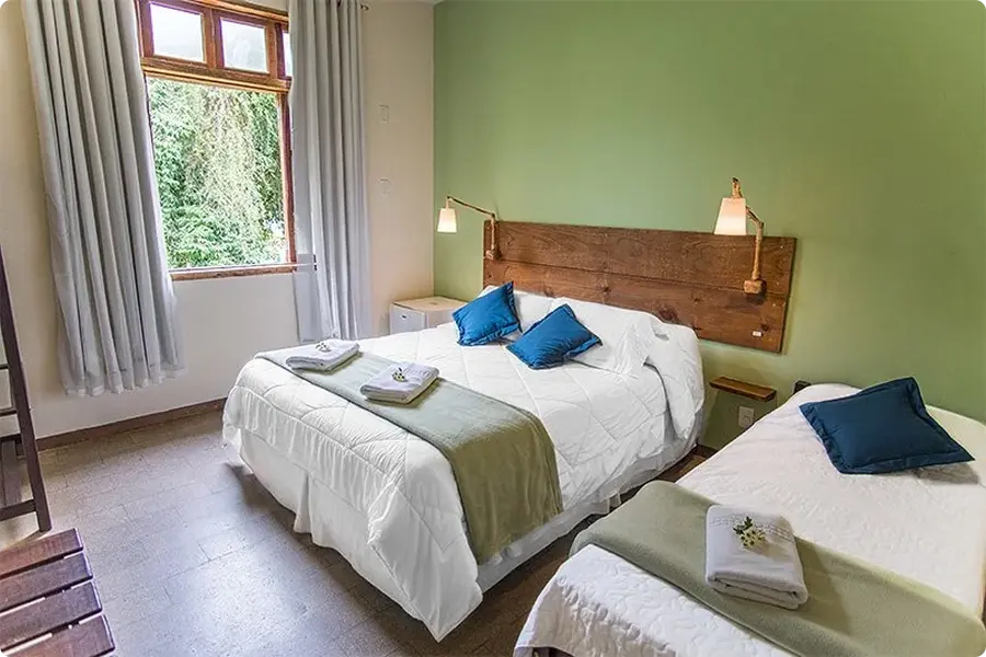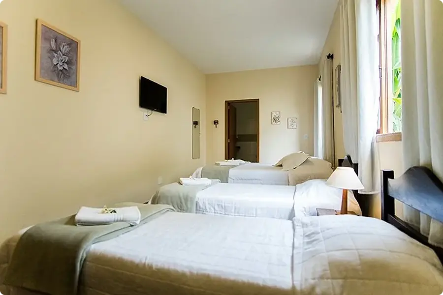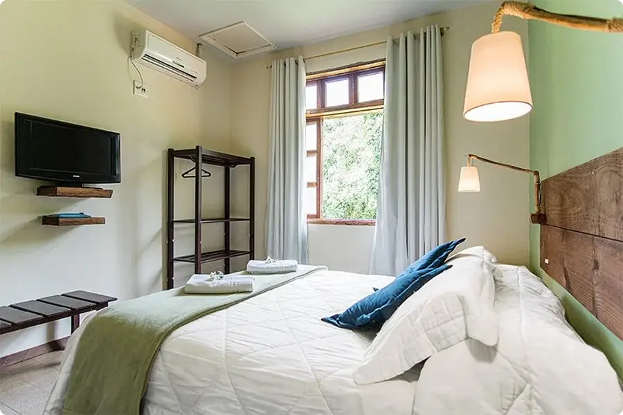 Com um padrão de conforto mais elevado, os apartamentos Master, estão disponíveis em formações de duplos até sêxtuplos – conjugados, em andar térreo ou no segundo andar. Quartos com ar-condicionado, frigobar, televisão e ducha com aquecimento a gás.