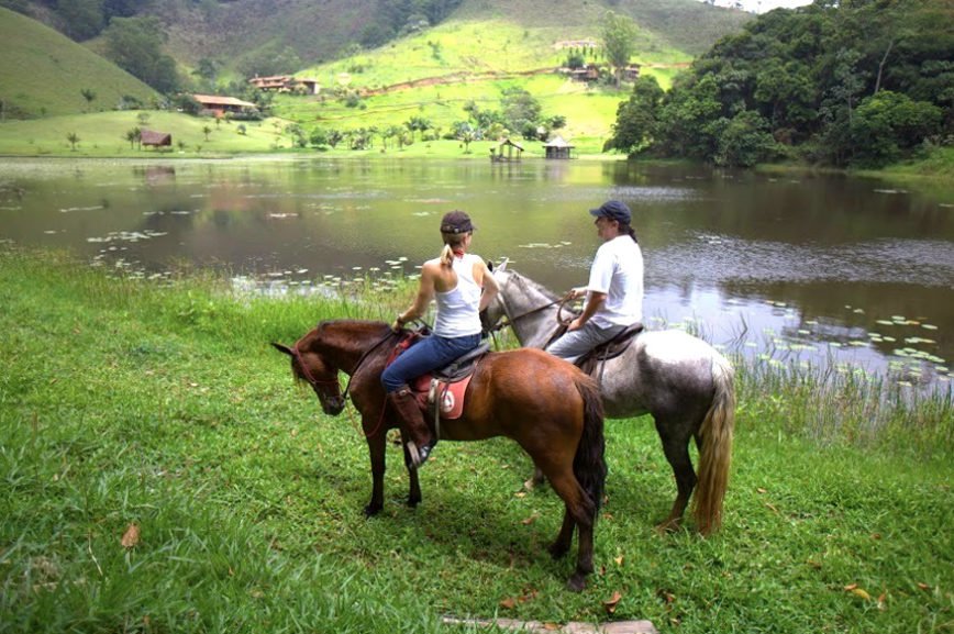 Sobre o cavalo, aprecie a beleza da Mata Atlântica nativa que toma conta da nossa região. Galope até o Parque de Aventuras e faça uma parada no lago que temos na propriedade.
