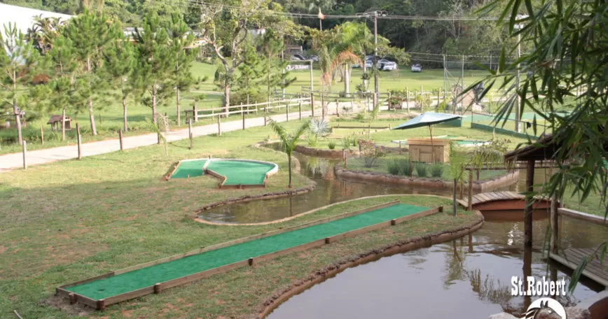 Que tal aproveitar o seu final de semana no Hotel Fazenda St. Robert para experimentar um esporte novo? Pois aqui você vai poder curtir o nosso Mini Golfe Canto da Roça e brincar sem compromisso ou qualquer uma das exigências de um clube de golfe.